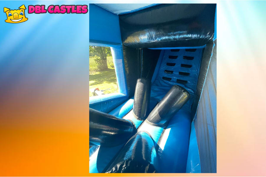 Step into a world of toxic colours as you navigate through this challenging assault course. The course is completely covered, ensuring that rain or shine, the fun never stops. With its vibrant blue, grey, and black colour scheme, the toxic theme adds an extra level of excitement to the experience.