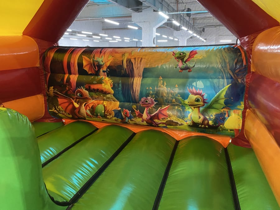 Watch as children embark on magical journeys, sliding alongside a friendly dragon in an inflatable masterpiece that combines fun and fantasy.